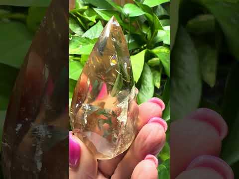 Magical Citrine tower stone with rainbow inclusions. Mined in Brazil, this one of a kind Citrine stone tower is gently faceted with a twist into the shape of a flame. The height is 3" and the width at the the widest part is 1 3/4". Checkout the additional pictures and video to see the beautiful rainbow deep inside this Citrine wonder.
