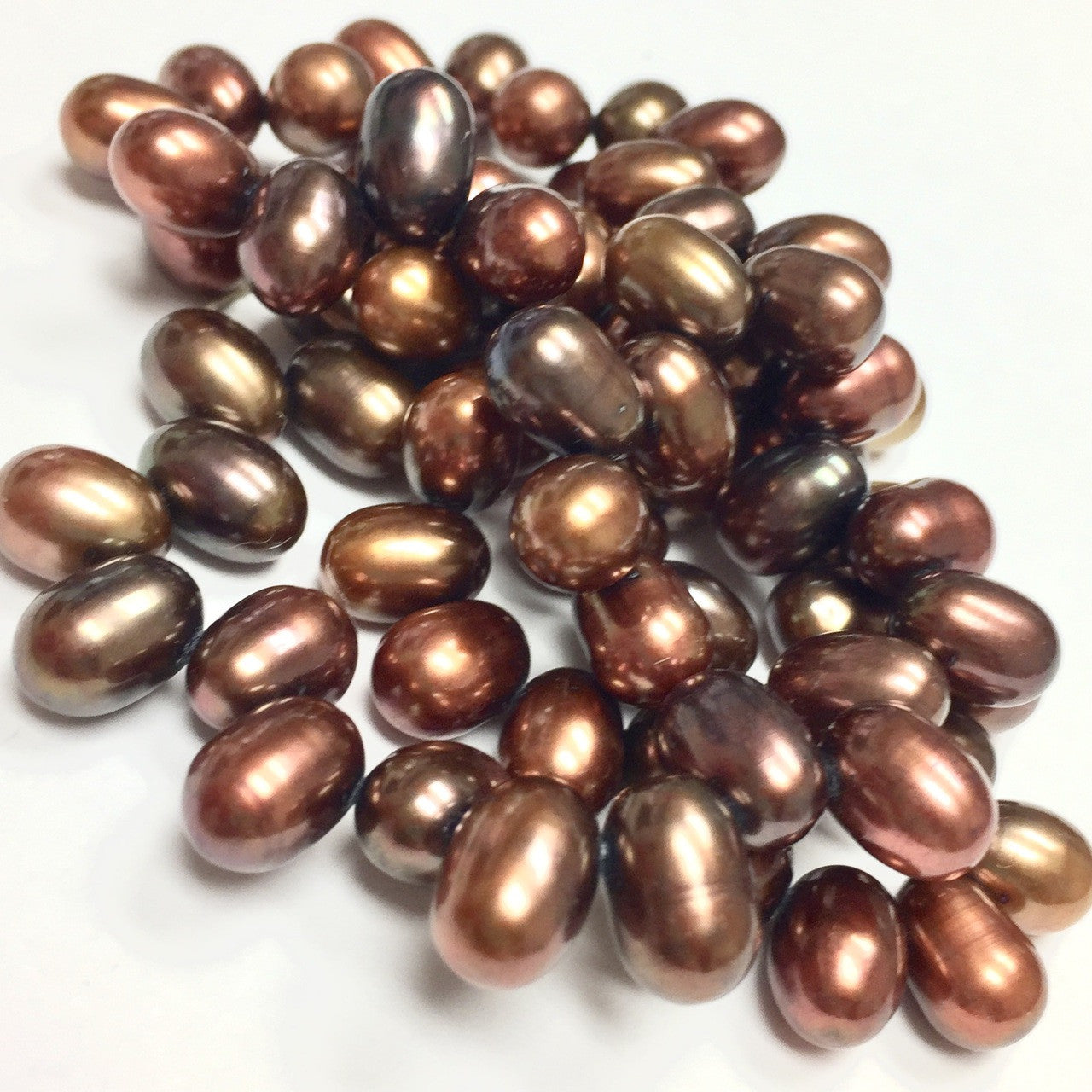 10 x 6mm These are freshwater top drilled dancing rice pearl beads. These cocoa pearl beauties have wonderful luster. You will receive a 16" strand of top drilled freshwater pearl beads here.  These pearls are perfect for those dangling designs. These pearl beads can be strung and knotted alone, or combined other types of beads for looks that range from casual to formal. Because freshwater pearls are a natural material, they will display slight variations in size and color.