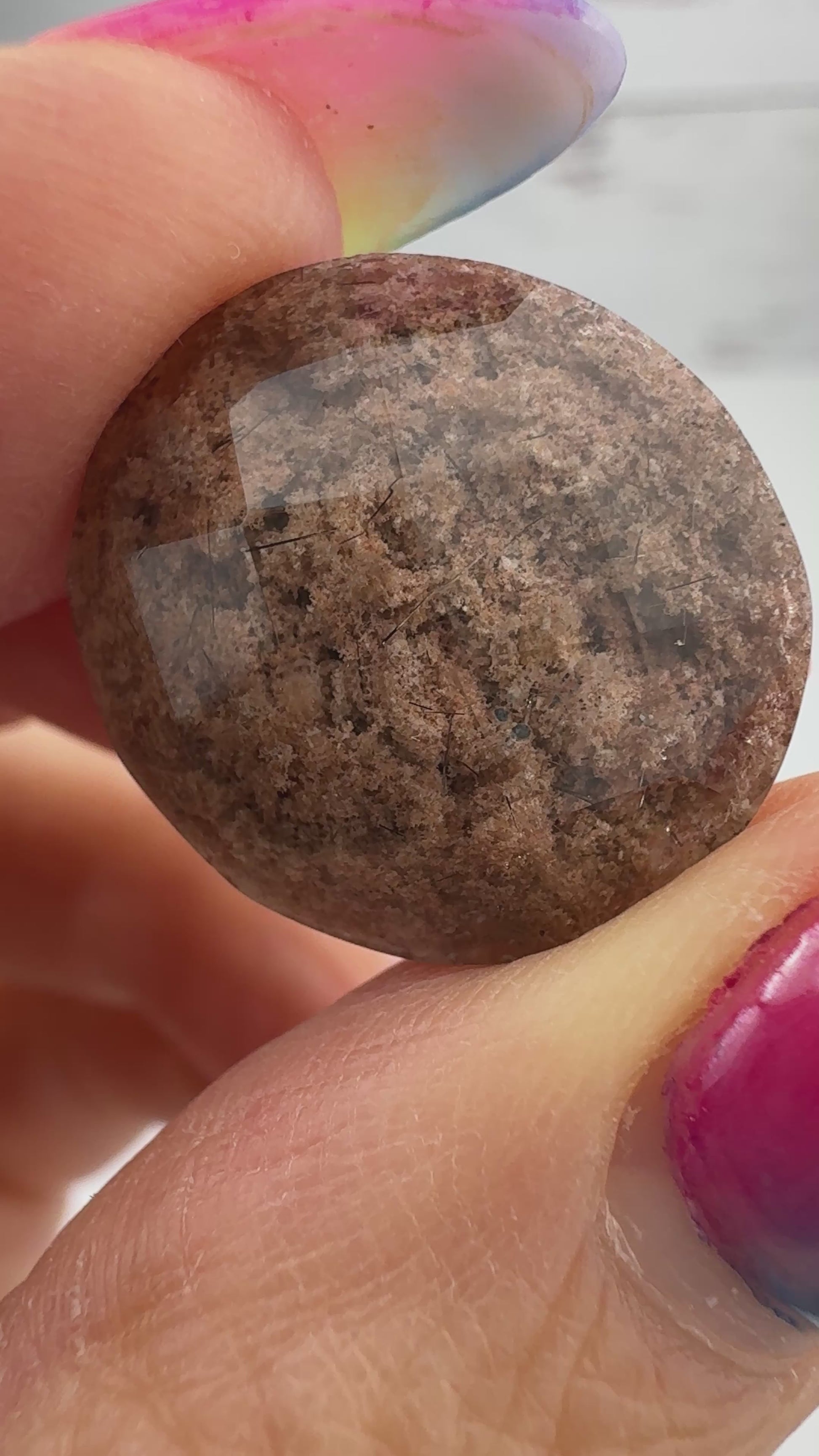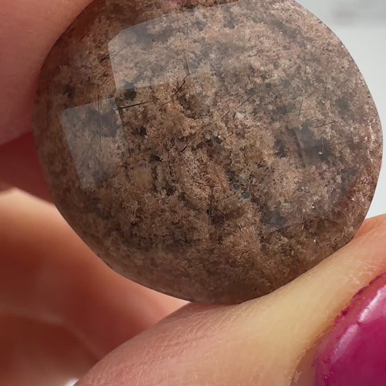 You will just love this high quality oval Lodolite Cabochon from Brazil. It is 18 x 20mm with a height of 9mm. This oval has a beautiful faceted top, which really reflects the natural inclusions.