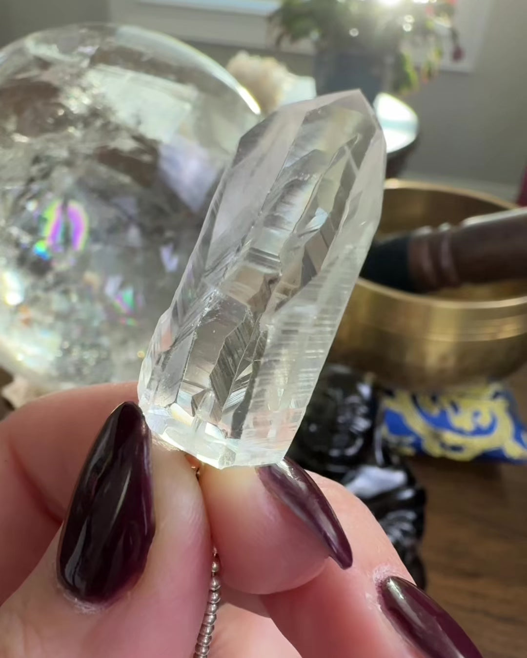 • 18” .925 Sterling Silver Lemurian Point pendant necklace.
