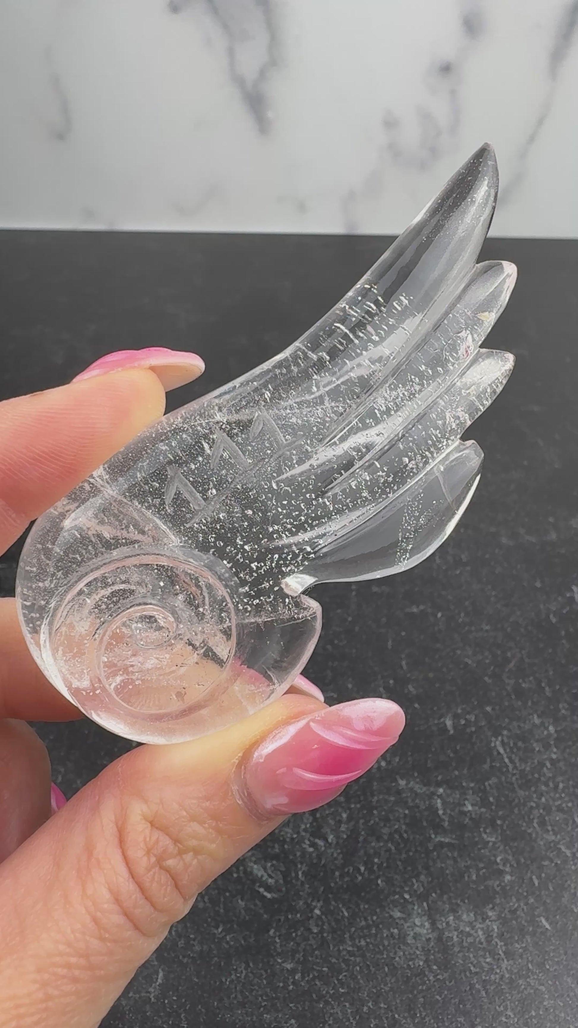 Master Carved Himalayan Quartz Angel Wing #111 3 1/4 x 1 1/2" - NC7663