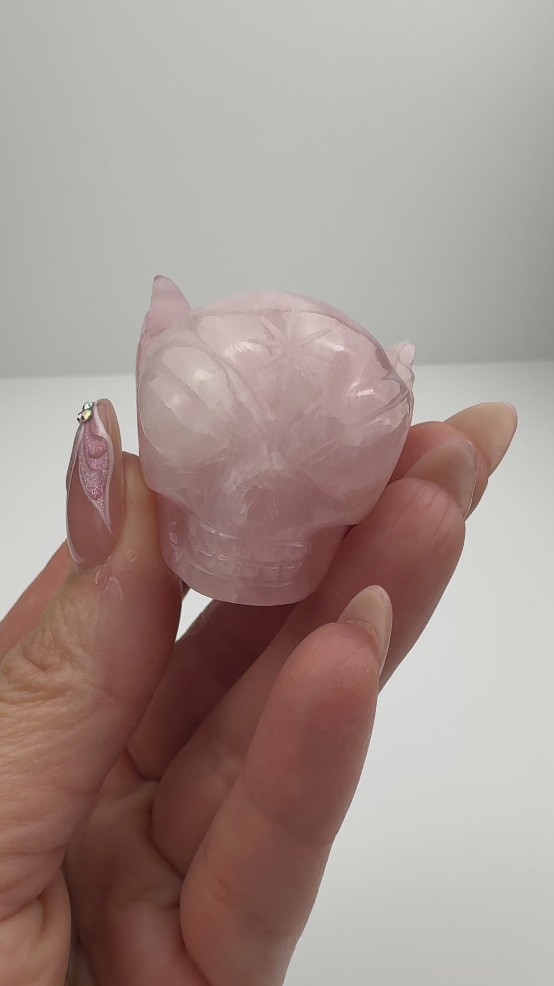 Master Carved Rose Quartz Cosmic Angel Skull #666 1 1/2 v 1 1/4" - NC7674