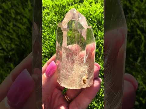 RARE-Magical high quality  Quartz Crystal partially polished terminated point with flashing rainbow inclusions. This natural rutilated Quartz Crystal measures 2 x 1 1/2". The gold colored needle like rutile inclusions are formations of titanium dioxide along with iron oxide. Check out the additional pictures and video for a closer look!