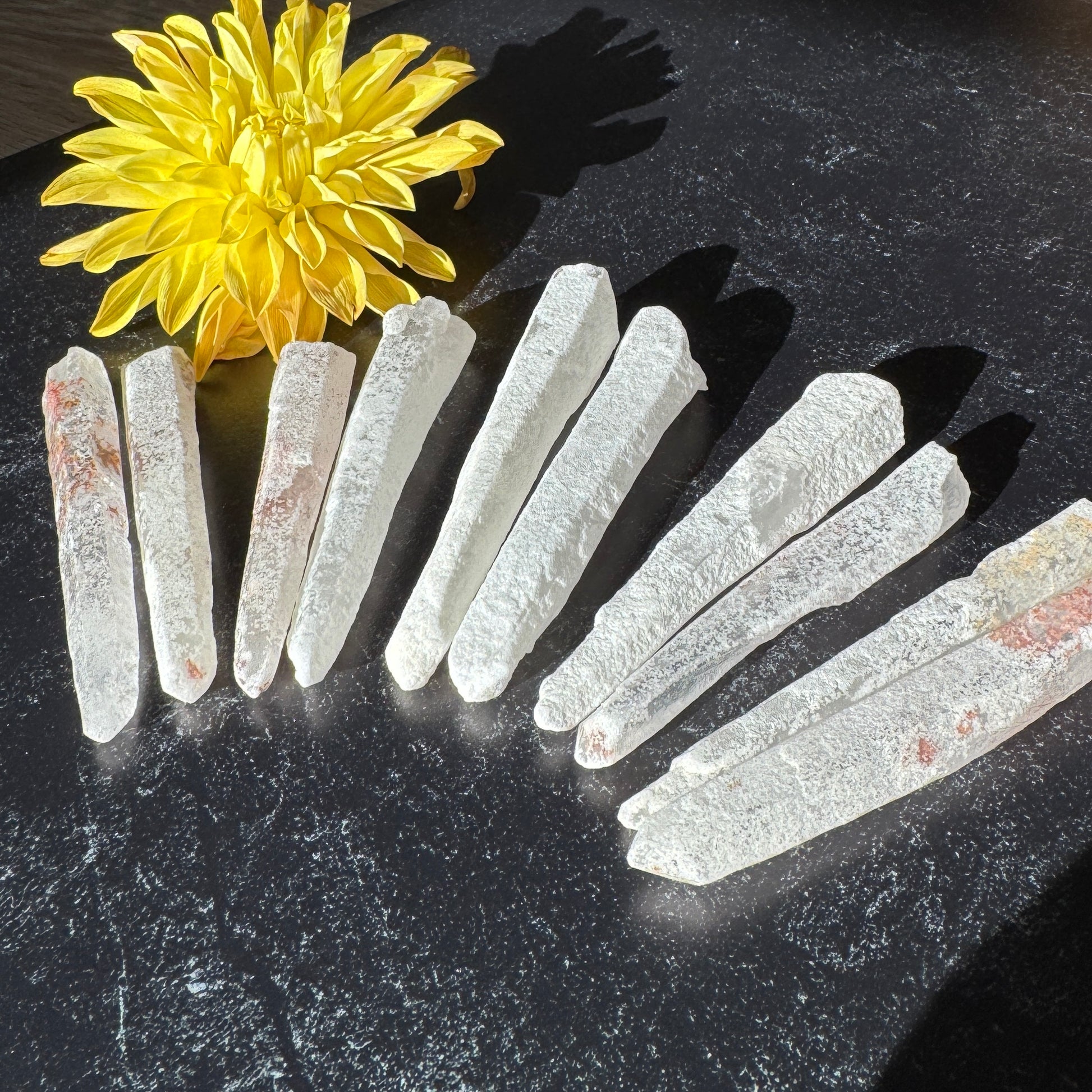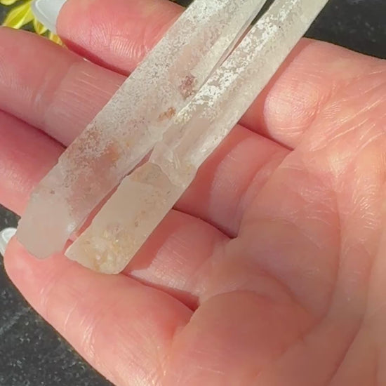 These rare Singing Lemurian Quartz Lasers with White Lodolite are unlike anything you’ve experienced before. Each crystal measures approximately 2.5"–3” in length, and every set of two is intuitively chosen just for you. When gently struck together, these natural laser formations release a clear, high-pitched resonance—a crystalline song said to activate and harmonize energy fields.