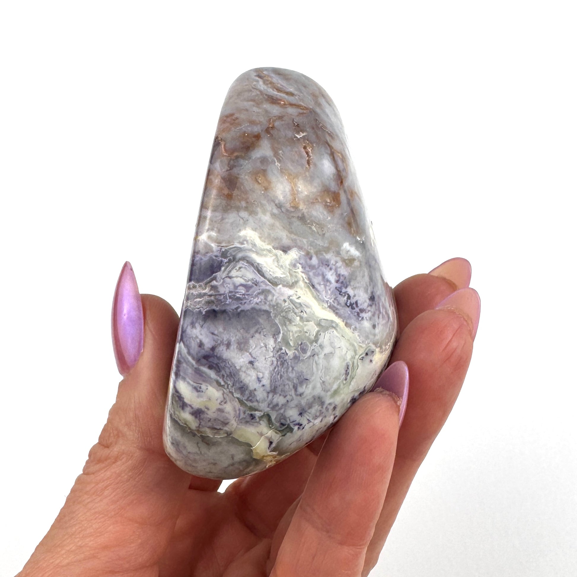 Metaphysically, Tiffany Stone is known as a stone of powerful energetic movement and spiritual transformation. It gently opens the throat, third eye, and crown chakras, helping you trust your intuition and communicate with clarity. Tiffany Stone is often used for emotional release, creative flow, and deep spiritual insight. It supports you as you shed old patterns and step into higher alignment. This stone is wonderful for meditation, intuitive development, and connecting with your soul’s truest path.