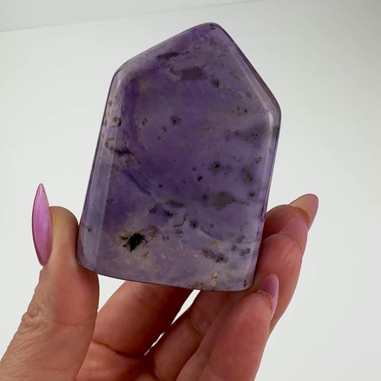 This is an exceptional, high-quality Tiffany Stone freeform sourced directly from the only region in the world where true Tiffany Stone is found: Utah, USA. Measuring approximately 2.45"x 1.8" x 1.7", this freeform displays the rich purples, creams, lilacs, and swirling patterns that define this rare collector’s material. These pieces are authentic, high-grade, and becoming increasingly difficult to obtain.