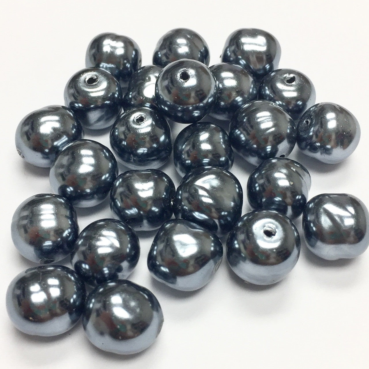 Vintage Black Metallic Baroque Glass Pearls 10mm